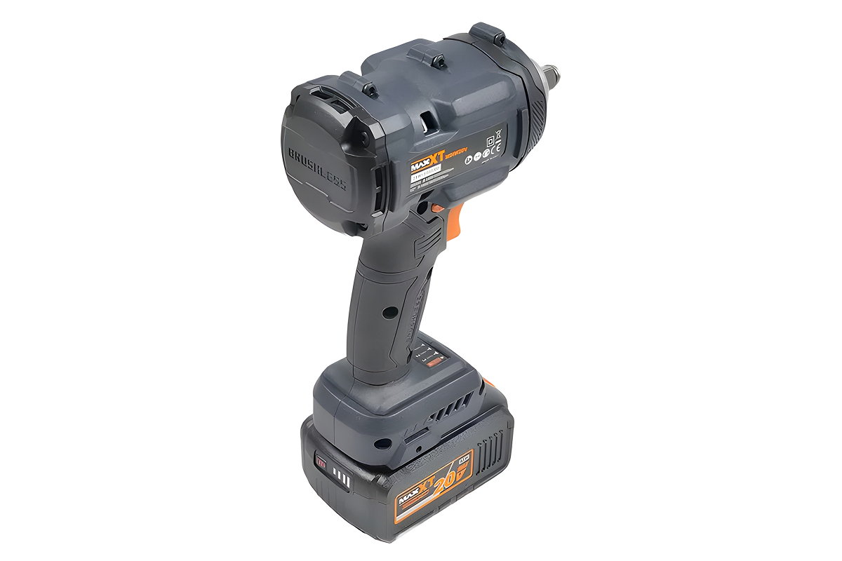 Ударный гайковерт аккумуляторный MAXXT MDIW20V — профессиональный беспроводной инструмент, разработанный для интенсивного применения в строительстве, автосервисе и промышленном монтаже. В основе модели — высокоэффективный бесщеточный двигатель с питанием от аккумулятора напряжением 20 В. Именно бесщеточная конструкция отличает данный гайковерт от инструментов начального уровня: она обеспечивает стабильный крутящий момент на всём диапазоне нагрузок, минимальное тепловыделение и ресурс работы, значительно превышающий щеточные аналоги. Максимальный крутящий момент достигает 1000 Н·м, что позволяет уверенно затягивать и откручивать крепёж любых типоразмеров — от болтов конструкций до колёсных гаек в автомобильном сервисе.