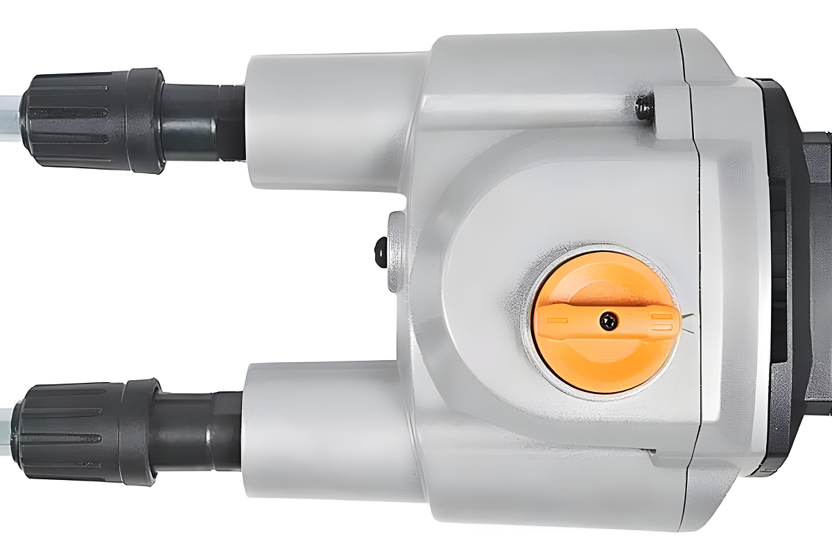 Двухскоростная трансмиссия предлагает диапазоны 200–480 об/мин на первой передаче и 250–750 об/мин на второй, охватывая весь спектр материалов от сверхплотных смесей до составов средней вязкости. Функция мягкого старта снижает нагрузку на двигатель и повышает комфорт оператора, встроенная защита от перегрузок продлевает ресурс инструмента, а электрический тормоз двигателя устраняет холостой ход и ускоряет рабочий процесс. Быстрозажимной патрон позволяет менять лопасти без лишних усилий и инструментов, функция защиты от случайного пуска обеспечивает дополнительную безопасность, а двойная прорезиненная рукоятка гарантирует надёжный хват и снижает усталость при длительном использовании. При весе 7 кг прибор сохраняет баланс между мощностью и управляемостью в любых рабочих условиях.