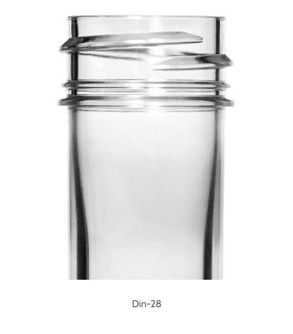 Горловины DIN широко используются в косметической промышленности, бытовой химии и фармацевтике благодаря своей универсальности и разнообразию размеров (от 18 до 28 мм). Они подходят для флаконов с кремами, лосьонами, маслами, а также для медицинских препаратов, требующих надёжного хранения.